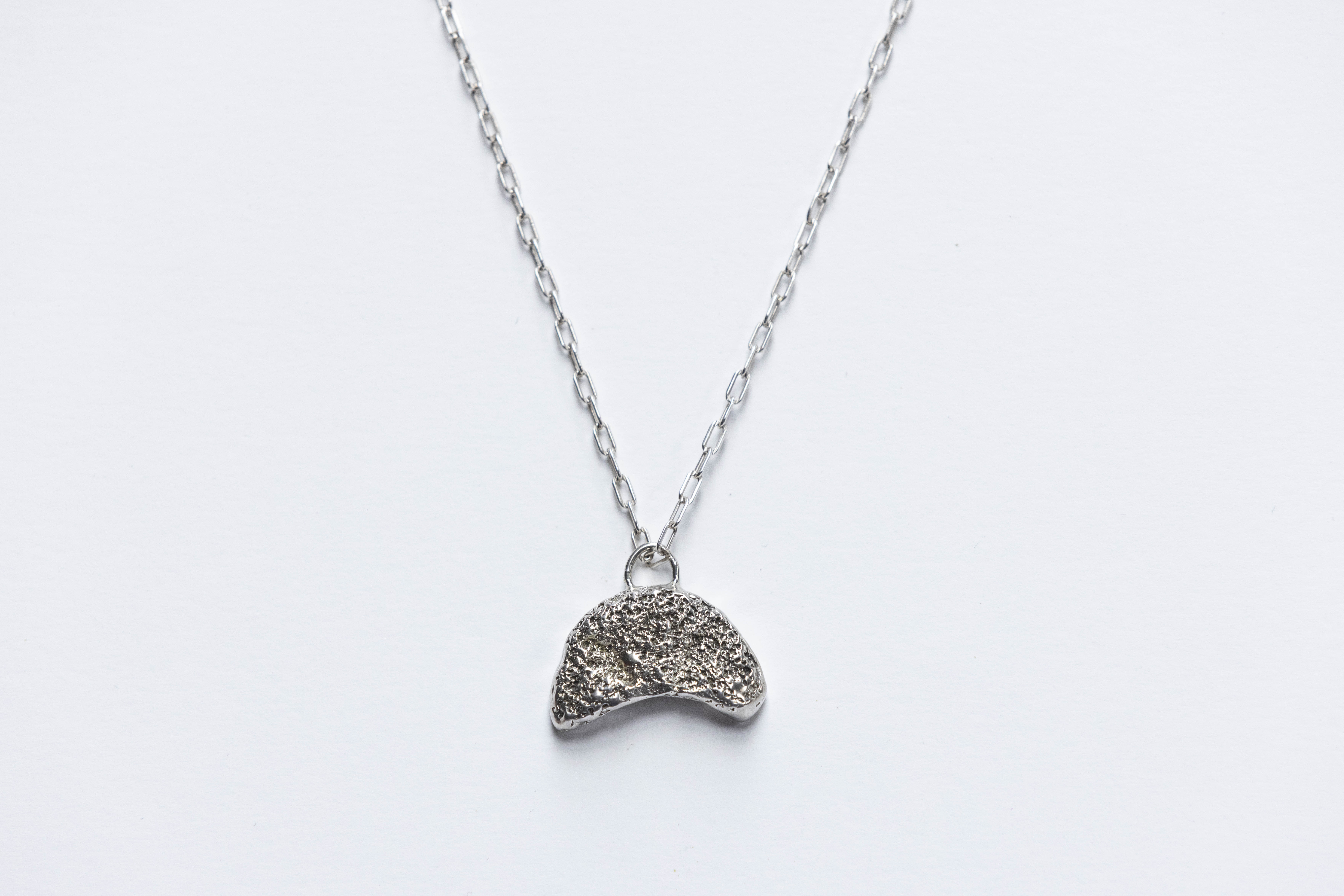 Colgante Plata 950, hecho por técnica de cera perdida a partir de reproducción escala 1:1 de osamenta animal encontrada en la pampa austral.